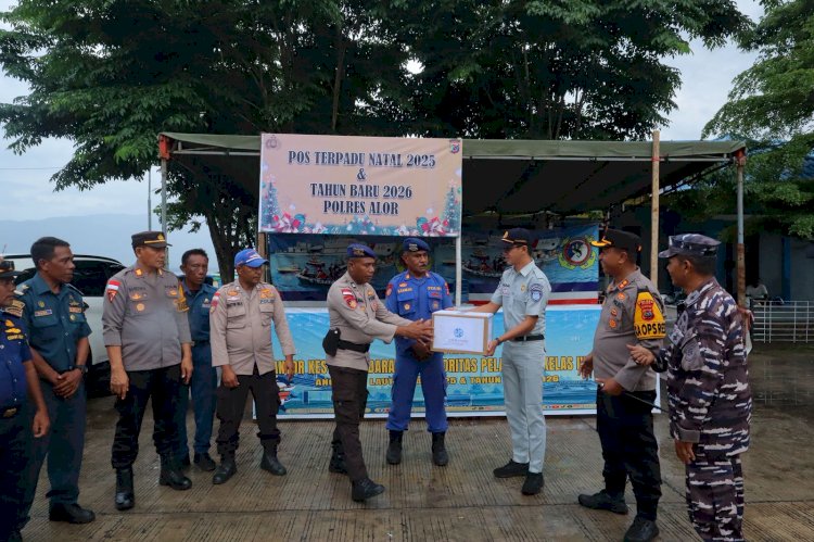 Tribratanewsalor.com - Kapolres Alor AKBP Nur Azhari, S.H., bersama instansi terkait melaksanakan pengecekan Pos Pengamanan Natal dan Tahun Baru (Nataru) di wilayah hukum Polres Alor pada Rabu, 24 Desember 2025, pukul 16.00 WITA. Kegiatan pengecekan tersebut dilaksanakan di Pos Pengamanan Nataru Pelabuhan Pelni Kalabahi serta Pos Terpadu Pelabuhan Dulionong, Kecamatan Teluk Mutiara, Kabupaten Alor.