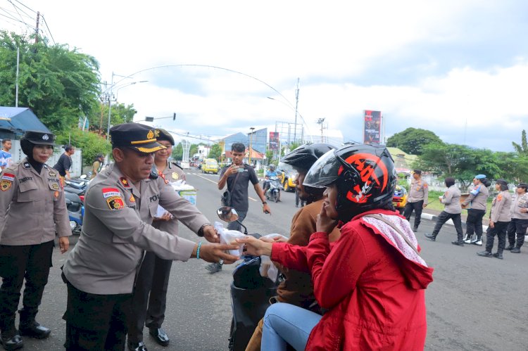 Polres Alor Bagikan Takjil Gratis kepada Masyarakat di Lapangan Mini Kalabahi