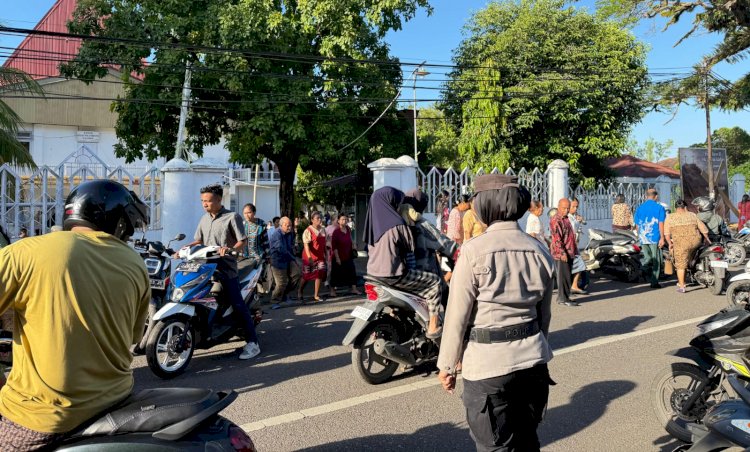 Pada Minggu, 12 April 2026, personel Polres Alor melaksanakan pengamanan Ibadah Kebaktian Utama Minggu di Gereja Pola Tribuana Kalabahi, yang berlokasi di Jalan Ki Hajar Dewantara No. 2, Kelurahan Kalabahi Kota, Kecamatan Teluk Mutiara, Kabupaten Alor.