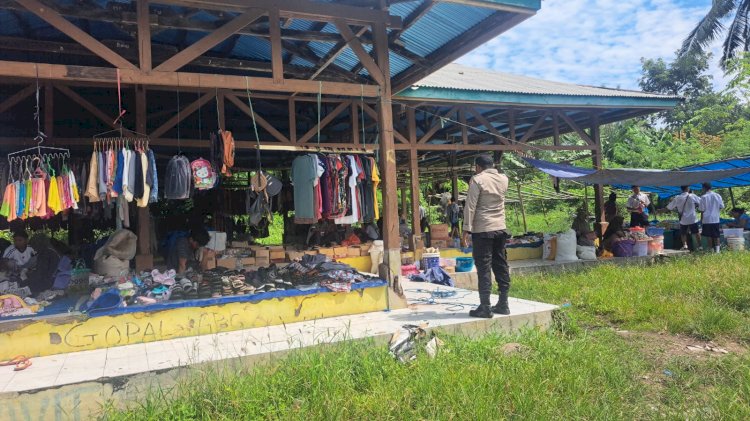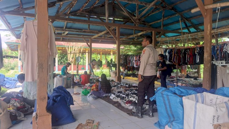 Anggota Polsek Pantar Barat melaksanakan kegiatan patroli pengamanan di Pasar Rakyat Maliang, Desa Muriabang, Kecamatan Pantar Tengah, Kabupaten Alor, pada Senin (20/04/2026) pagi.