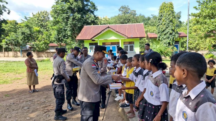 Ikut Empati atas Kejadian Siswa SD di NTT, Kapolres Alor Bagikan Alat Tulis dan Perlengkapan Sekolah kepada Siswa SD di Wilayah Welai dan Fanating