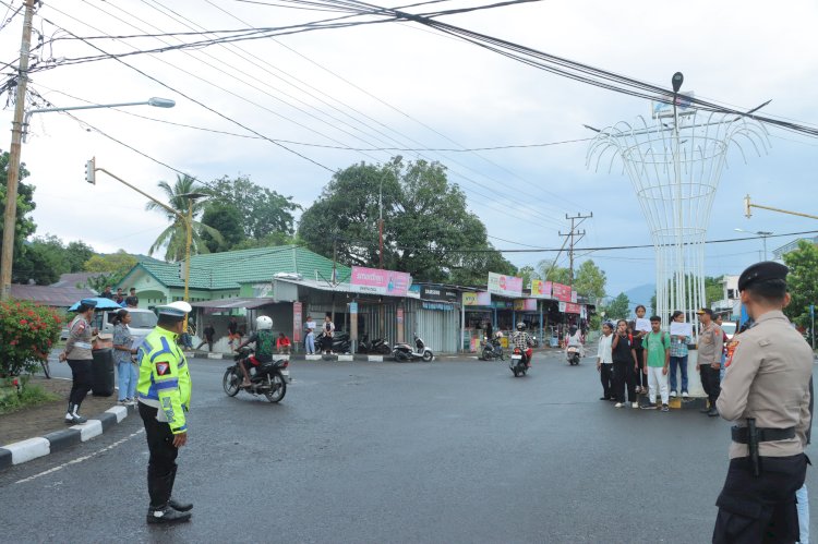 Selanjutnya, Kapolres Alor bersama para mahasiswa turun langsung membagikan bunga kepada para pengguna jalan sebagai simbol ajakan menjaga kedamaian di Kabupaten Alor.