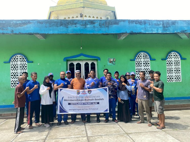 Alor – Dalam rangka menyongsong Hari Ulang Tahun Polisi Air dan Udara (Polairud) ke-75, Satuan Polairud Polres Alor melaksanakan kegiatan bakti sosial dengan membersihkan rumah ibadah di Masjid Al-Furqon, Desa Adangbuom, Kecamatan Teluk Mutiara, Senin (17/11/2025) Pukul 07.30 Wita.