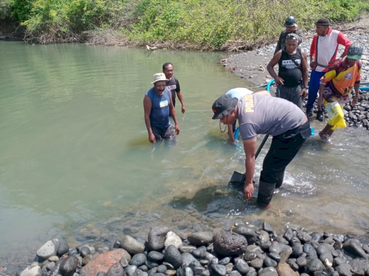 Personel Polsek Abad Turut Membantu Perbaikan Jalan Buraga–Lerabain di Desa Kuifana