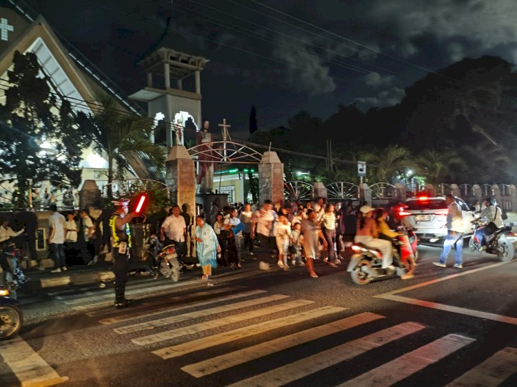 Kebaktian pertama dipimpin oleh Pastor RD. Irenius A. Leuobi, Pr., dengan jumlah jemaat sekitar 1.000 orang. Sementara kebaktian kedua dipimpin oleh Pastor RD. Ambrosius Bala Ladjar, Pr., yang diikuti sekitar 350 jemaat. Seluruh rangkaian ibadah berakhir pukul 21.50 WITA dalam situasi aman dan kondusif.