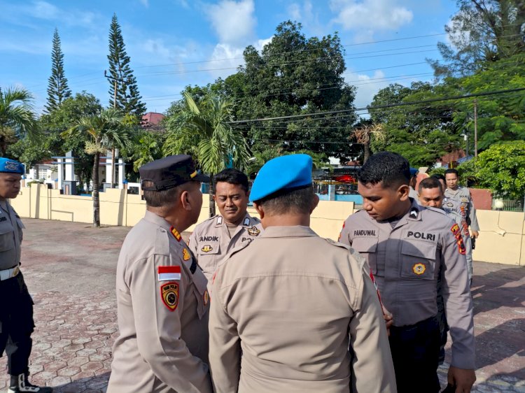 Dalam pemeriksaan tersebut, petugas melakukan pengecekan secara menyeluruh terhadap seluruh personel guna memastikan kedisiplinan, kerapian, serta kelengkapan administrasi sebagai anggota Polri.
