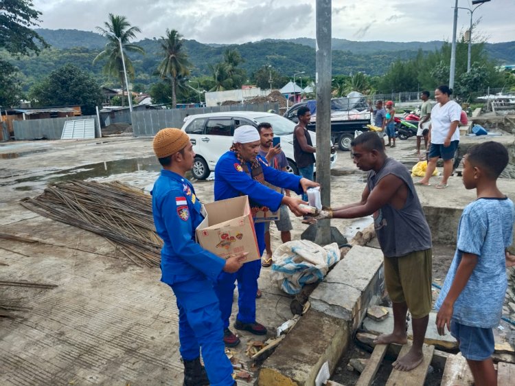 Kalabahi – Dalam rangka menyemarakkan kebaikan di bulan suci Ramadhan 1447 Hijriah, Satuan Polisi Perairan dan Udara (Sat Polairud) Polres Alor melaksanakan kegiatan pembagian takjil kepada masyarakat, khususnya awak kapal yang sedang labuh tambat di Pelabuhan Dulionong, Kelurahan Binongko, Kecamatan Teluk Mutiara, Kabupaten Alor, Jumat (06/03/2026) sore.