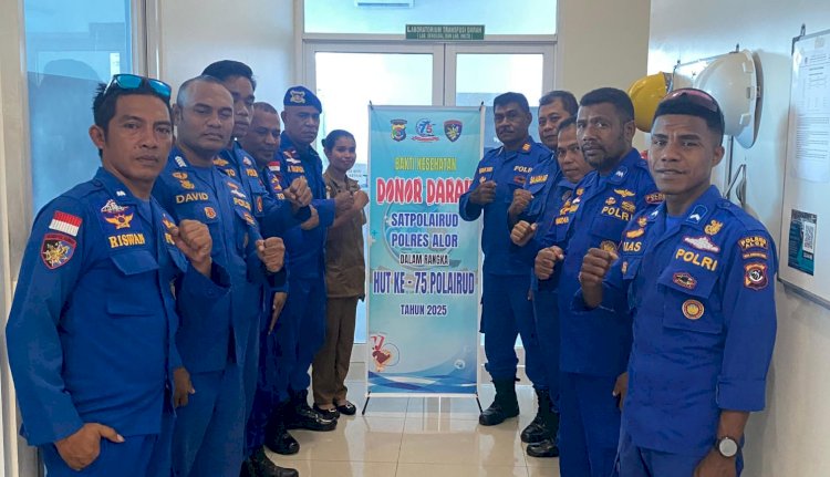 KALABAHI - Dalam rangka menyongsong Hari Ulang Tahun Polairud ke-75 tahun 2025, Satuan Polisi Perairan dan Udara (Polairud) Polres Alor menggelar kegiatan bakti kesehatan berupa donor darah di RSUD Kalabahi, Selasa (18/11/2025).